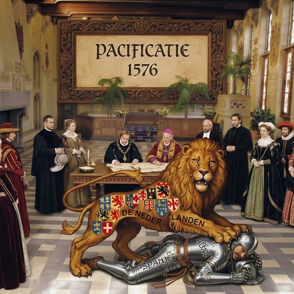 We duiken in een tijd waar religie, macht en opstand hand in hand gaan. In 1576 ondertekenen de noordelijke en zuidelijke gewesten een historisch Vredesverdrag in het Gentse stadhuis dat de heersende godsdienstige spanningen voorgoed zal bezweren na de razernij van de beeldenstorm. Helaas eindigt de droom van eenheid en vrijheid. Na 72 jaar wordt de scheiding van de Lage Landen definitief bezegeld. Samen met Nederland herdenkt Gent de "Pacificatie", een verdrag dat zijn tijd ver vooruit was.